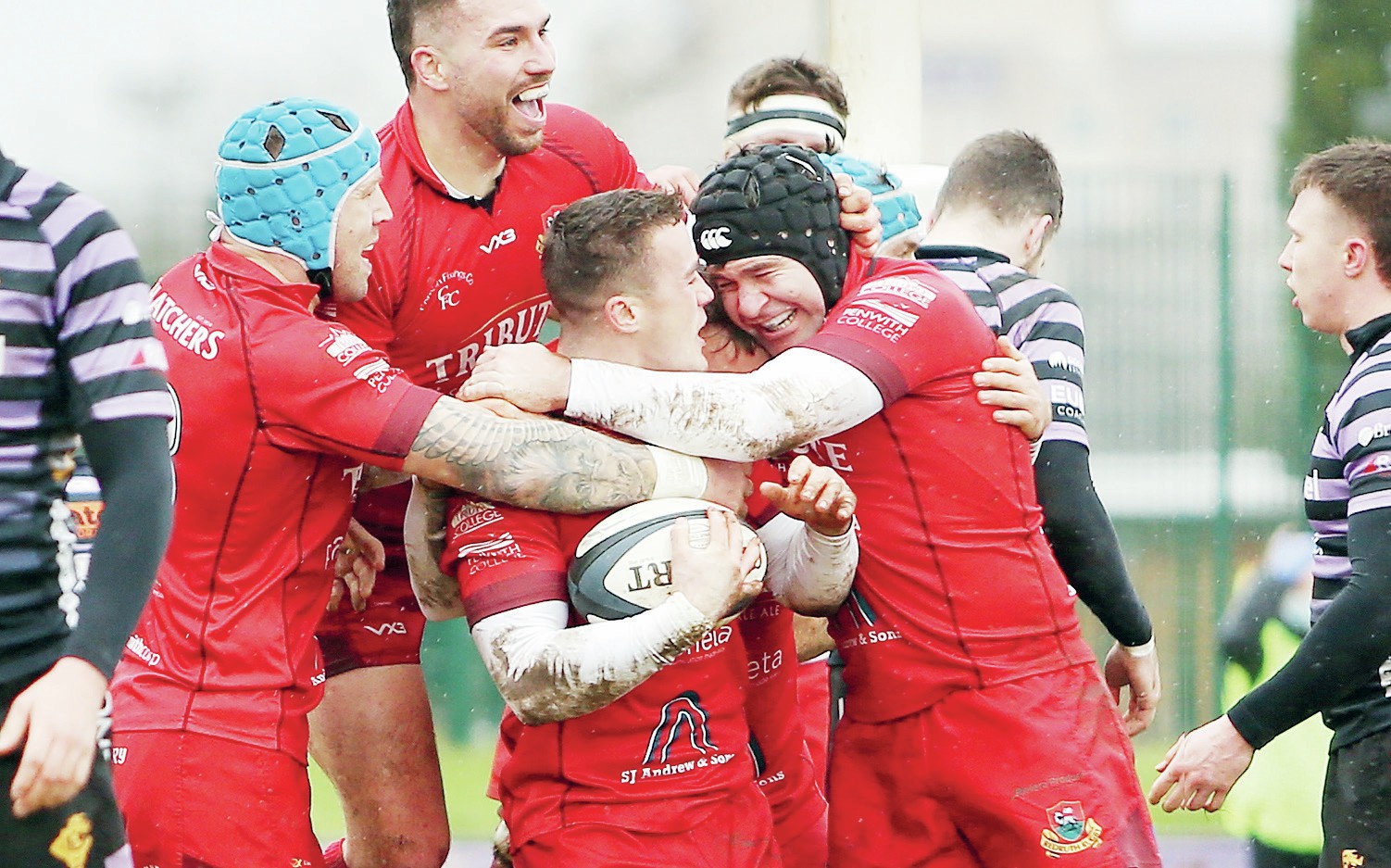 By SHAUN WREN Worthing............ 17pts Redruth..............22pts Delight: Redruth celebrate as Richard Brown scores the winning try WING ace Curtis Barnes scored...