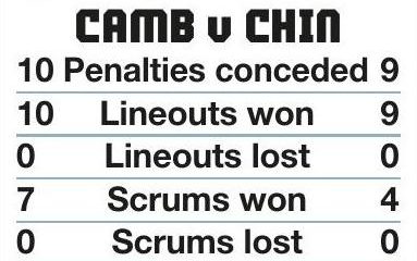 By STEVE Cambridge ......15pts Tries: Timpson 14, Doorey-Palmer 17 Conversion: Annand 15 Penalty: Annand 36 Chinnor .............55pts Tries: Hanks 3, Cousins...