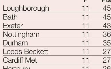 BUCS RUGBY ■ By JOSEPH TERRY LOUGHBOROUGH moved top of the BUCS Super Rugby table, after defeating Exeter 49-40 in a...