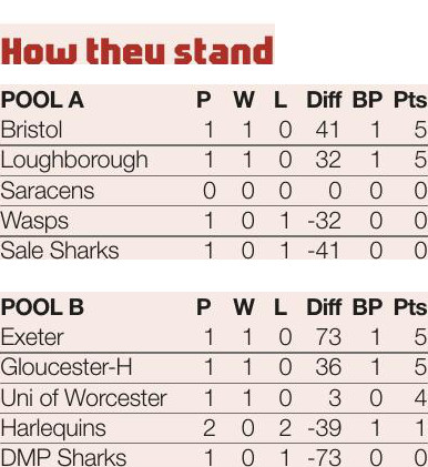 By BRENDAN GALLAGHER Wasps ..................8pts Tries: Cruse 5 Penalties: Atkinson 45 Bristol ................23pts Tries: Sheedy 19, Bradbury 59 Conversions: Sheedy 20,...
